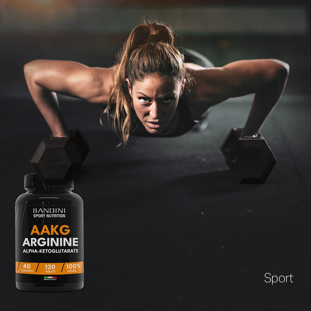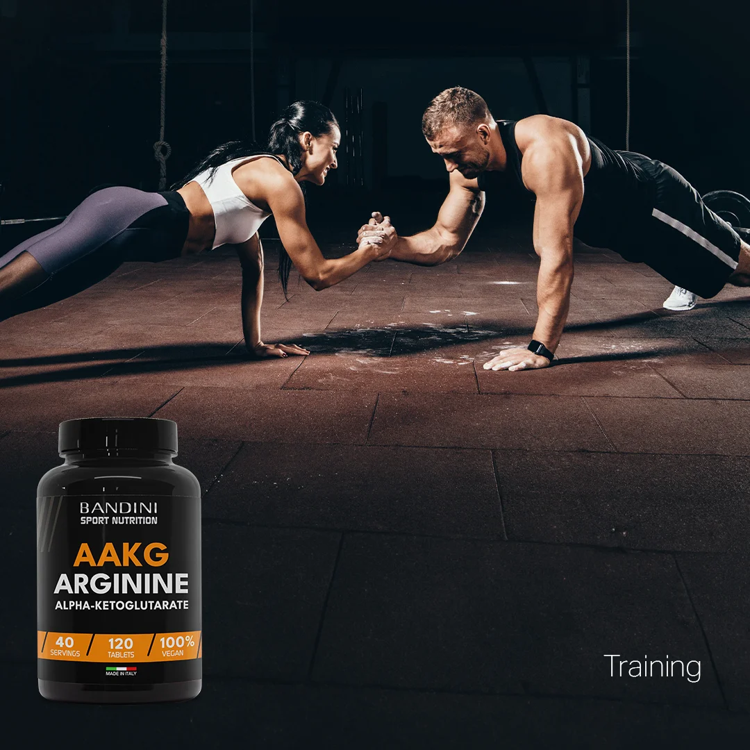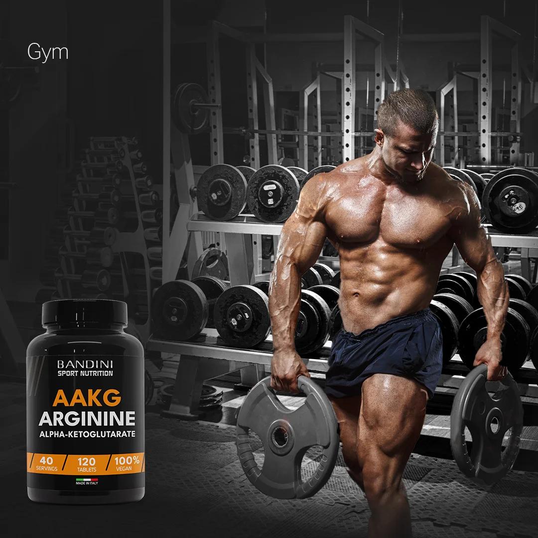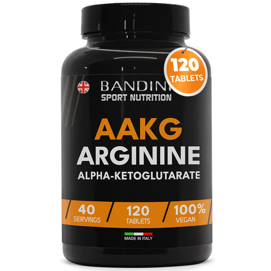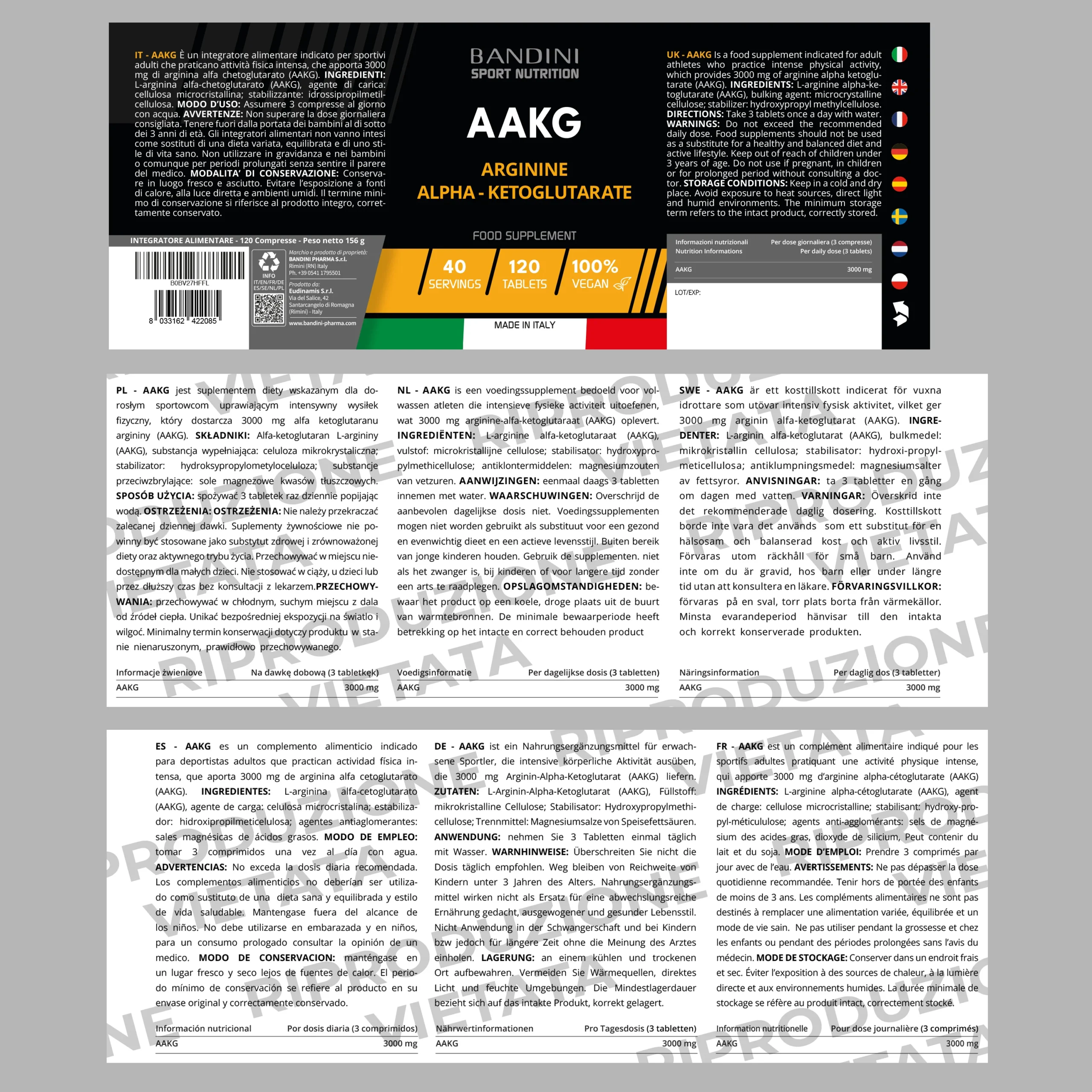 Prehransko dopolnilo na osnovi arginina alfa-ketoglutarata (AAKG). Pakiranje vsebuje 120 tablet, kar zadošča za 40 odmerkov. AAKG podjetja Bandini Pharma je namenjen odraslim športnikom, ki se ukvarjajo z intenzivno telesno dejavnostjo.