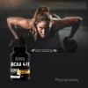 Aminokisline BCAA 4:1:1 spodbujajo sintezo beljakovin, zmanjšujejo poškodbe mišic, pomagajo omejiti čas okrevanja in preprečujejo katabolizem po vadbi. Podpirajo mišično maso in spodbujajo njen razvoj. Formula je obogatena z vitaminom B1, ki podpira normalni energetski metabolizem, in vitaminom B6, ki prispeva k zmanjšanju utrujenosti in izčrpanosti. Opakiranje se lahko razlikuje.