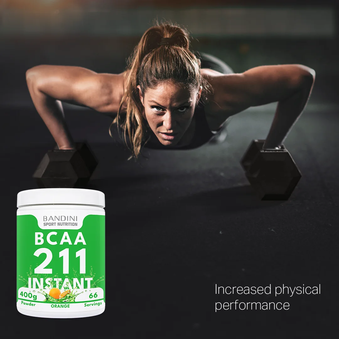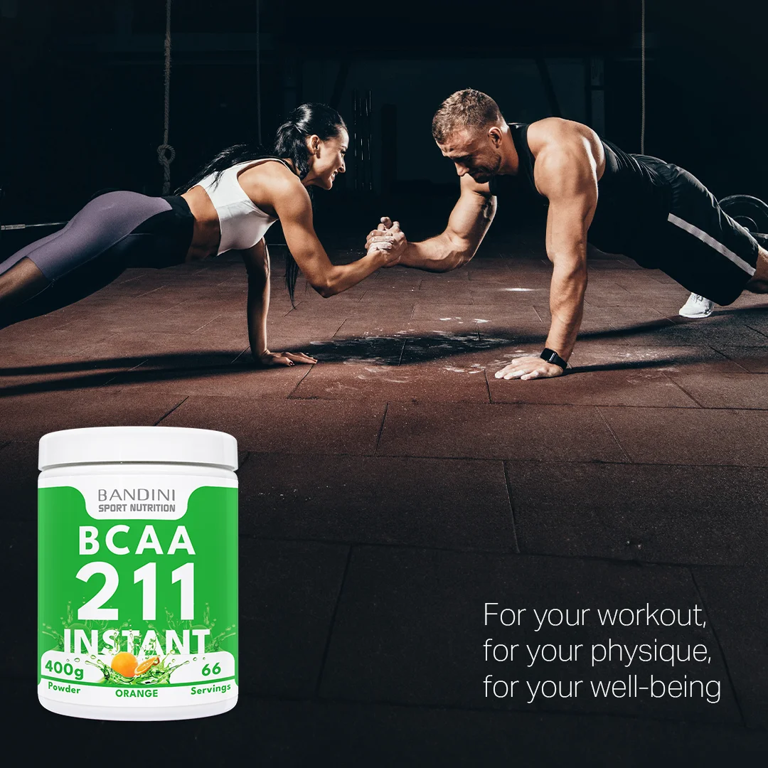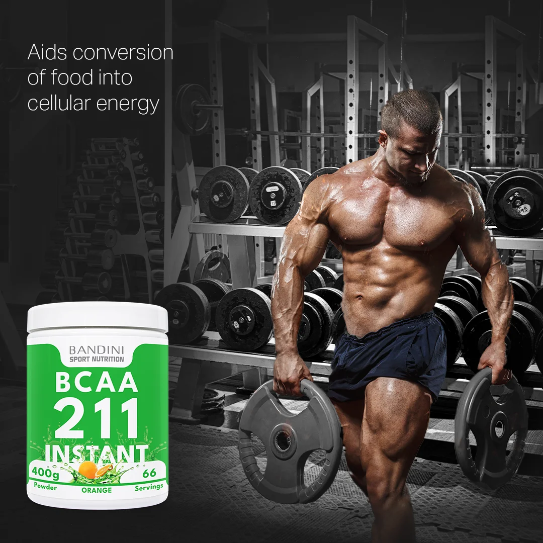 Prehransko dopolnilo na osnovi aminokislin z razmerjem 2:1:1. Pakiranje vsebuje 400 g, kar zadostuje za 66 odmerkov. BCAA aminokisline podjetja Bandini Pharma so preizkušene za ohranjanje in gradnjo mišične mase, zagotavljajo pravilno razmerje levcina, valina in izolevcina, ki dopolnjujejo vsakodnevno prehrano in športno prehrano.