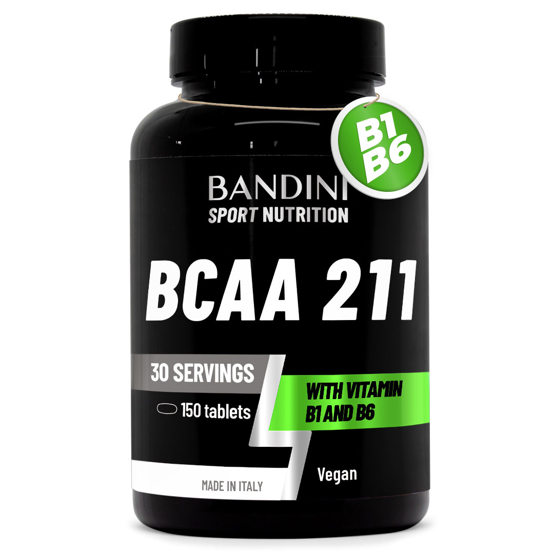 Prehransko dopolnilo na osnovi razvejanih aminokislin z uravnoteženim razmerjem 2:1:1, obogateno z vitaminoma B1 in B6. Pakiranje vsebuje 150 tablet, kar zadošča za 30 odmerkov. Tablete BCAA 2:1:1 podjetja Bandini Pharma so preizkušene za ohranjanje in gradnjo mišične mase, zagotavljajo pravilno količino levcina, valina in izolevcina kot dodatek k prehrani in športni prehrani.