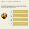 Ta izdelek vsebuje bromelino, pridobljeno iz izvlečka ananasa; vsaka kapsula vsebuje 500 mg bromeline, kar skupaj znaša 1000 mg na dan (2 kapsuli).