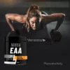 EAA je prehransko dopolnilo z esencialnimi aminokislinami, ki jih človeško telo ne more samo sintetizirati in jih je treba vnesti s hrano. Posebna formulacija različnih esencialnih aminokislin zagotavlja optimalno raven absorpcije in celične biološke uporabnosti. Aminokisline spodbujajo sintezo beljakovin, blažijo mišično poškodbo, pomagajo zmanjšati čas okrevanja in se borijo proti katabolizmu po vadbi. Opakiranje se lahko razlikuje.