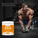 EAA je prehransko dopolnilo z esencialnimi aminokislinami, ki jih človeško telo ne more samo sintetizirati in jih je treba vnesti s hrano. Posebna formulacija različnih esencialnih aminokislin zagotavlja optimalno raven absorpcije in celične biološke uporabnosti. Aminokisline spodbujajo sintezo beljakovin, blažijo mišično poškodbo, pomagajo zmanjšati čas okrevanja in se borijo proti katabolizmu po vadbi.