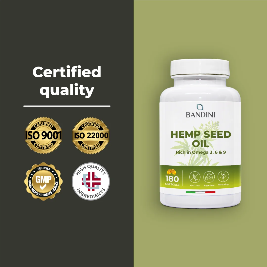 Naše konopljino olje je pridobljeno iz konoplje Sativa in hladno stisnjeno, kar pomaga ohraniti njegove naravne lastnosti. Vsaka kapsula vsebuje 1000 mg konopljinega olja v obliki perlic, ki so enostavne za požiranje in so idealne za tiste, ki iščejo praktično in vsakodnevno dopolnilo. S 180 mehkimi kapsulami v pakiranju imate na voljo zaloge za 6 mesecev.