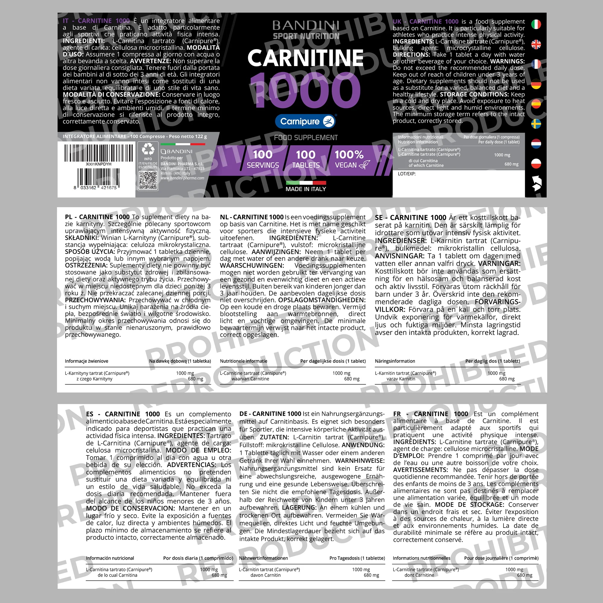 Prehransko dopolnilo z visokim odmerkom, ki vsebuje 1000 mg karnitin tartrata na dnevni odmerek (1 tableta). Pakiranje vsebuje 100 tablet, kar zadostuje za več kot 3 mesece. Vsaka tableta vsebuje 1000 mg L-karnitin tartrata.