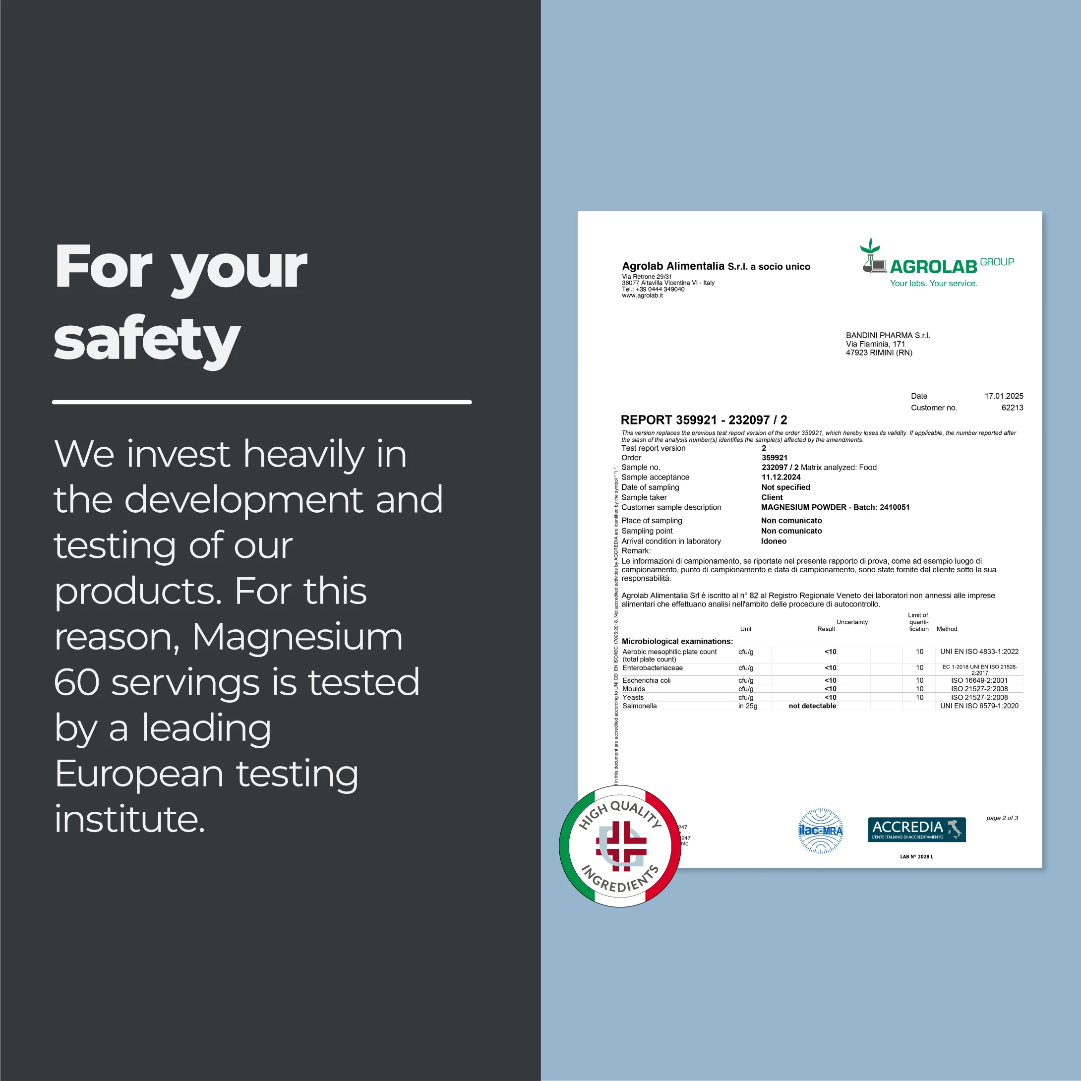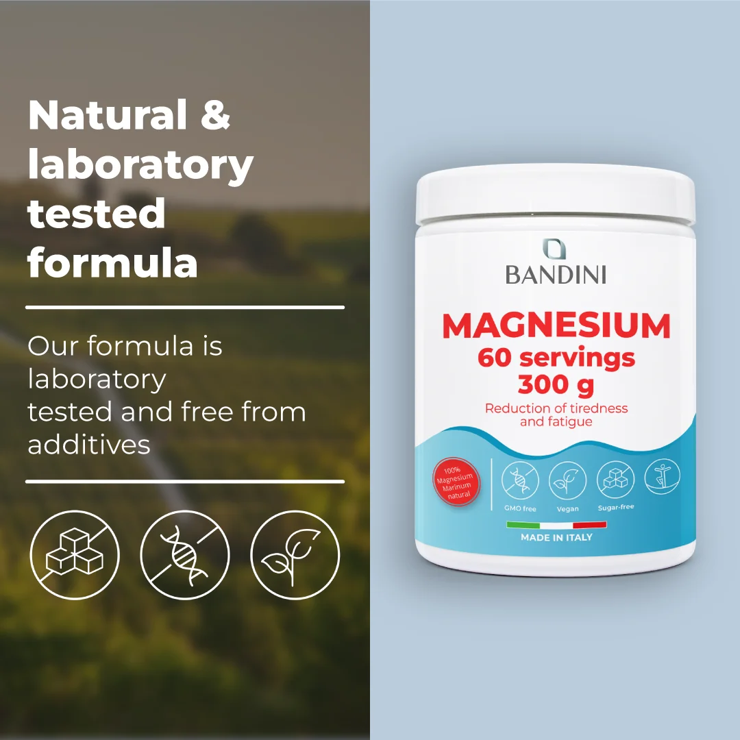 Prehransko dopolnilo na osnovi magnezija. Pakiranje vsebuje 300 g. 100% naravni morski magnezij.