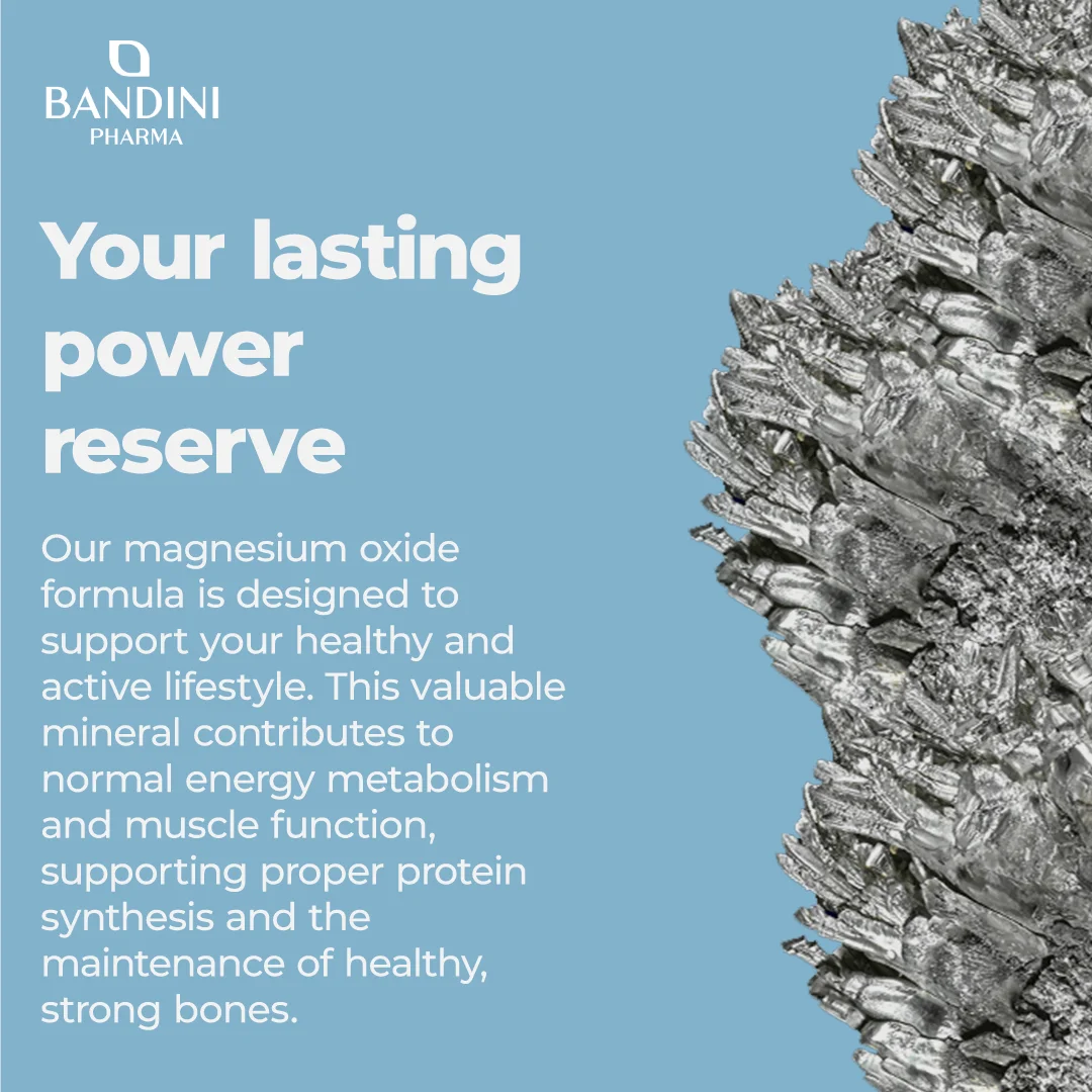 Magnezij je mineral, ki je bistvenega pomena za naše telo. Pomaga zmanjševati utrujenost in izčrpanost, podpira normalno presnovo energije in pomaga pri normalnem delovanju mišic. Poleg tega sodeluje pri elektrolitskem ravnovesju in ohranjanju zdravih kosti in zob. Naš prehranski dodatek je vir magnezija, ki je visoko biološko razpoložljiv in ga je enostavno jemati vsak dan.