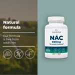 Izberite naš N-acetil-cistein NAC. Naš izključno zeliščni NAC vsebuje 220 kapsul za zalogo za +7 mesecev. Naša močna formula vsebuje 600 mg N-acetil-cisteina na kapsulo, kar vam zagotavlja ustrezen dnevni vnos. Naše kapsule, ki jih je lahko pogoltniti in so zelo biološko dostopne, se zlahka vključijo v vašo rutino dobrega počutja.