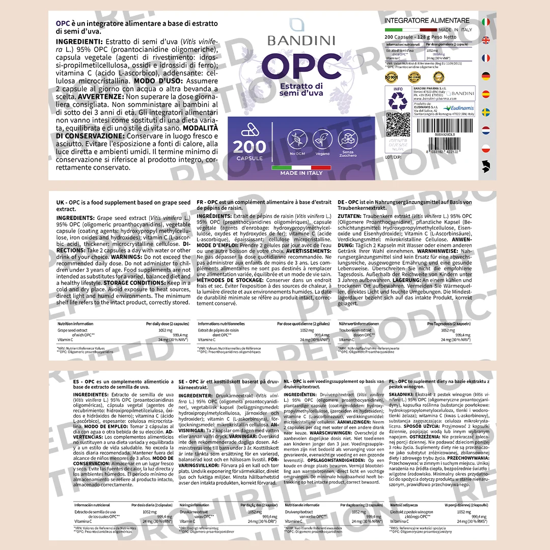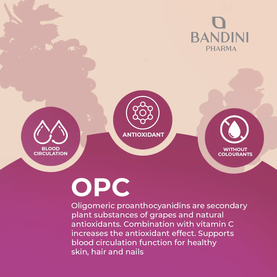OPC je prehransko dopolnilo na osnovi izvlečka grozdnih pečk. OPC vsebuje številne antioksidante, flavonoide, ki spadajo med sekundarne rastlinske spojine, katehine, ki delujejo kot antioksidanti, ter resveratrol, ki spada med polifenole. OPC pomagajo zaščititi telo pred poškodbami prostih radikalov ter prispevajo k zaščiti in podpori krvnih žil in mikrocirkulacije.
