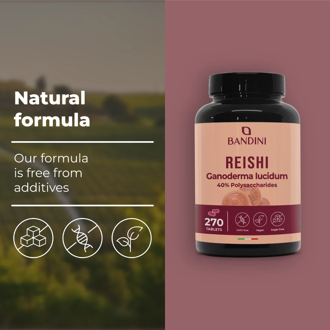 Naša formula zagotavlja 1300 mg izvlečka Reishi na dan, v obliki 2 tablet po 650 mg. Zaradi razmerja ekstrakcije 13:1 ta odmerek ustreza 16.900 mg prahu celotnega goba. Izvleček je standardiziran na 40 % polisaharidov, sestavine, ki je naravno prisotna v gobah.